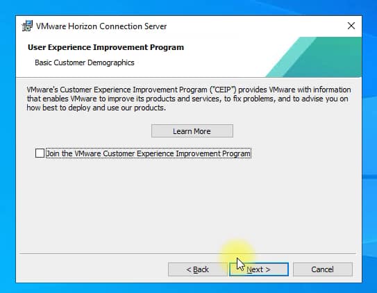 In the next step there is a question about joining the product quality improvement program, we uncheck these options: