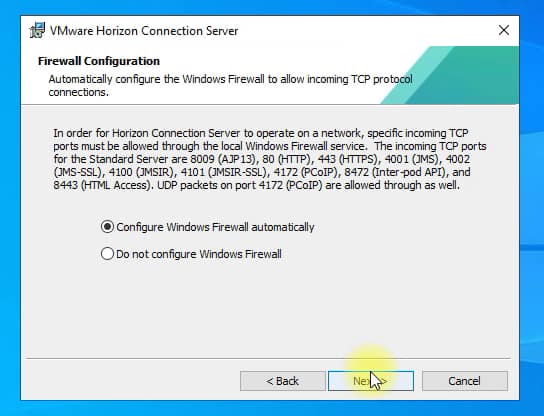 The installer can make automatic entries in the windos firewall, I recommend leaving the option to automatically add these entries: