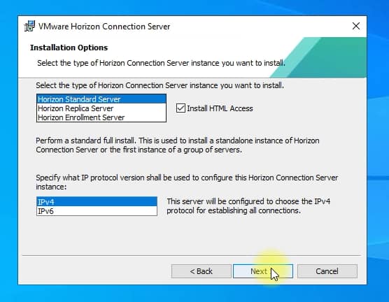 - In addition, there is also an option to select Install HTML Access, this is an option that installs the ability to access virtual desktops and applications through a browser that supports HTML5.