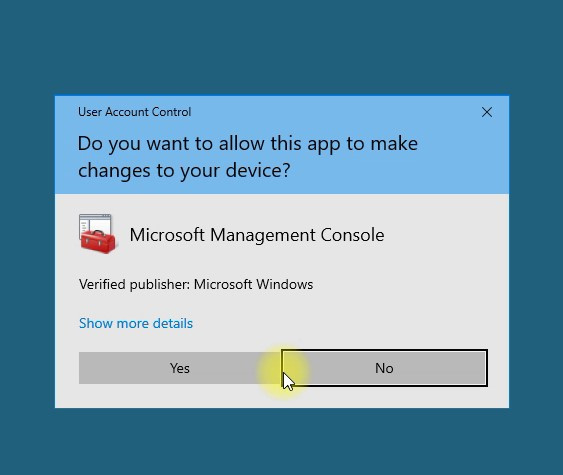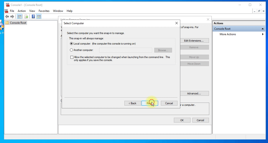 To do this, start the MMC attachment on the connection server, just select start and type mmc: