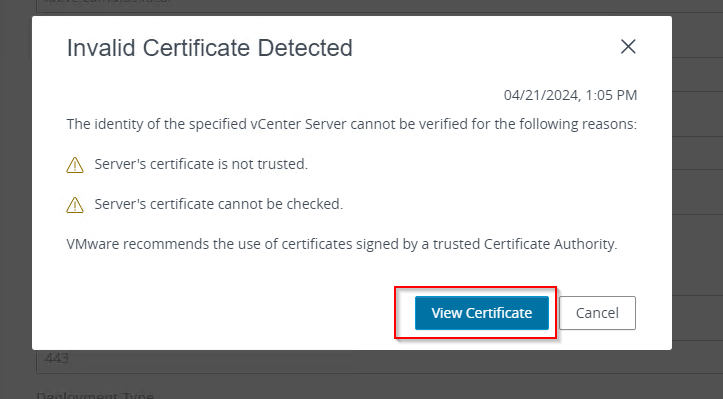 - The address of the vcenter server in the form of FQDN or IP,