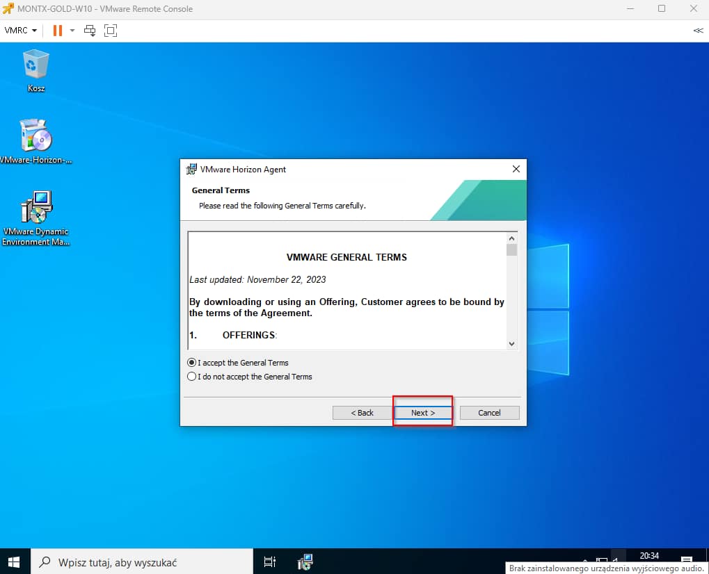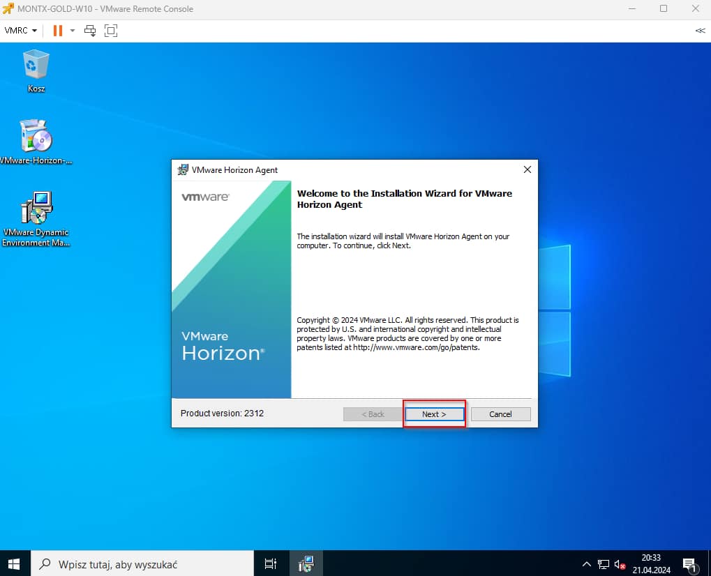 Run the agent installation file in this case it is VMware-Horizon-Agent-x86_64-2312-8.12.0-23142606.exe