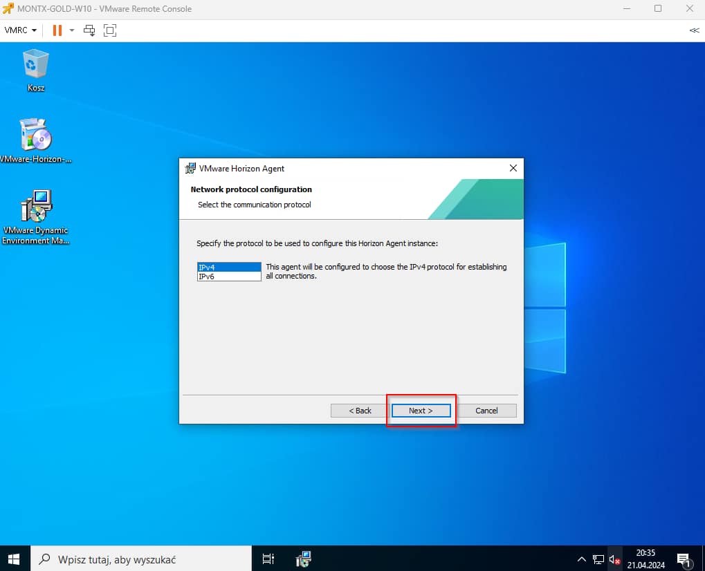 The next step is very important, because this is the installation of Horizon agent, which communicates with the connection server, without it we will not be able to create VDI machines.