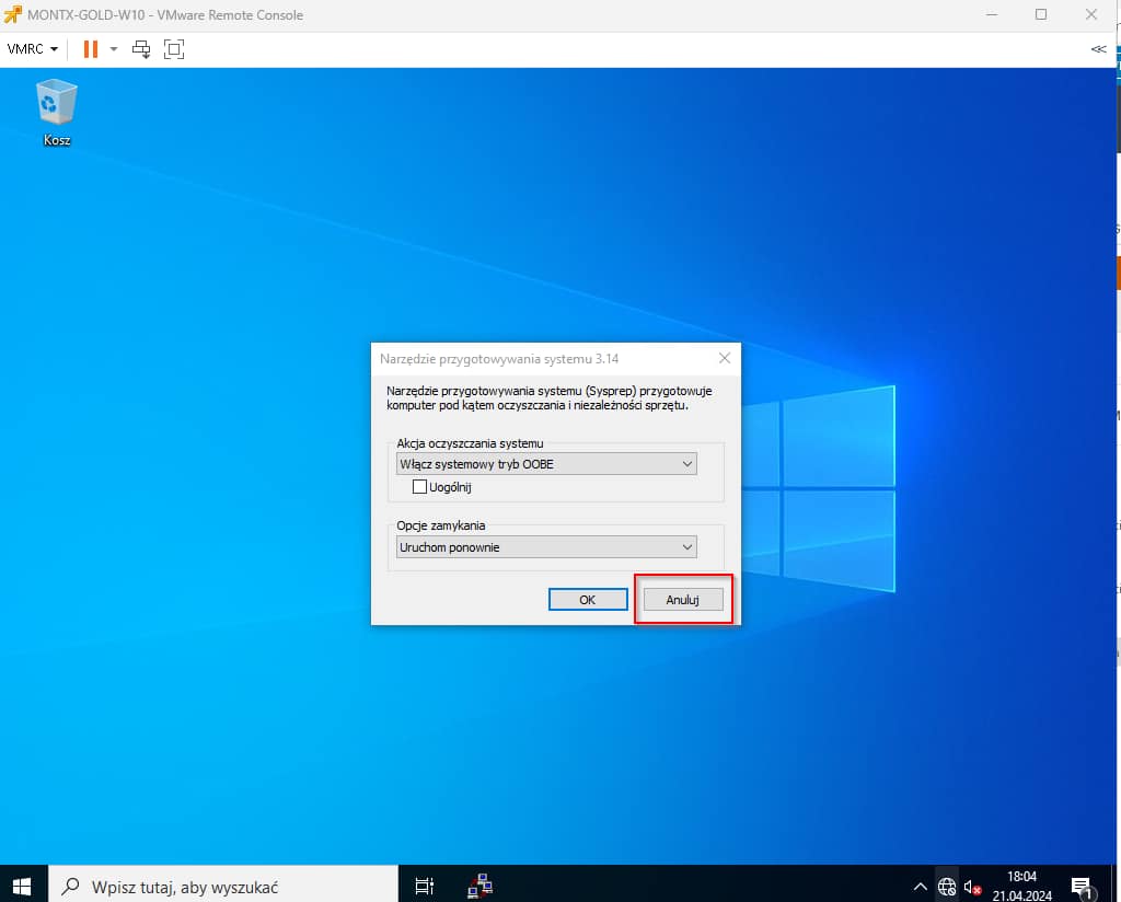 After startup, a window from sysprep tool will be displayed, you can close it or select Cancel