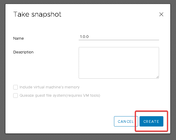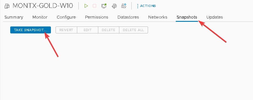 The next step is to make a snapshot, it is good practice to call the snapshot with the golden image version, such as 1.0.0 or according to the established policy in the Organization.