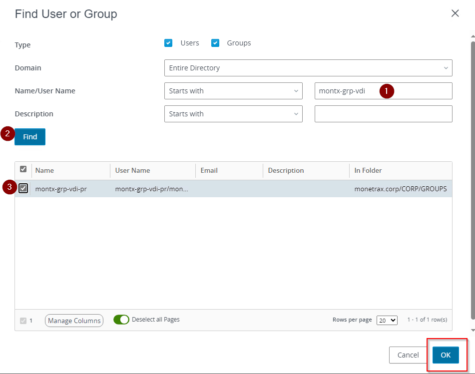 In the window that opens, you can search for individual users or groups. You need to enter a name, select Find and select the object of your choice.